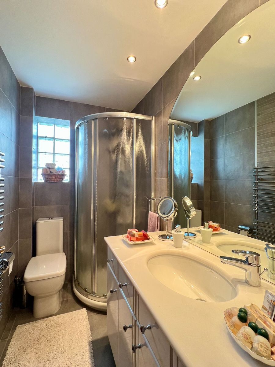 Master υπνοδωμάτιο με ιδιωτικό μπάνιο, δύο επιπλέον υπνοδωμάτια (το ένα με τζάκι), σάουνα και μπάνιο με υδρομασάζ.