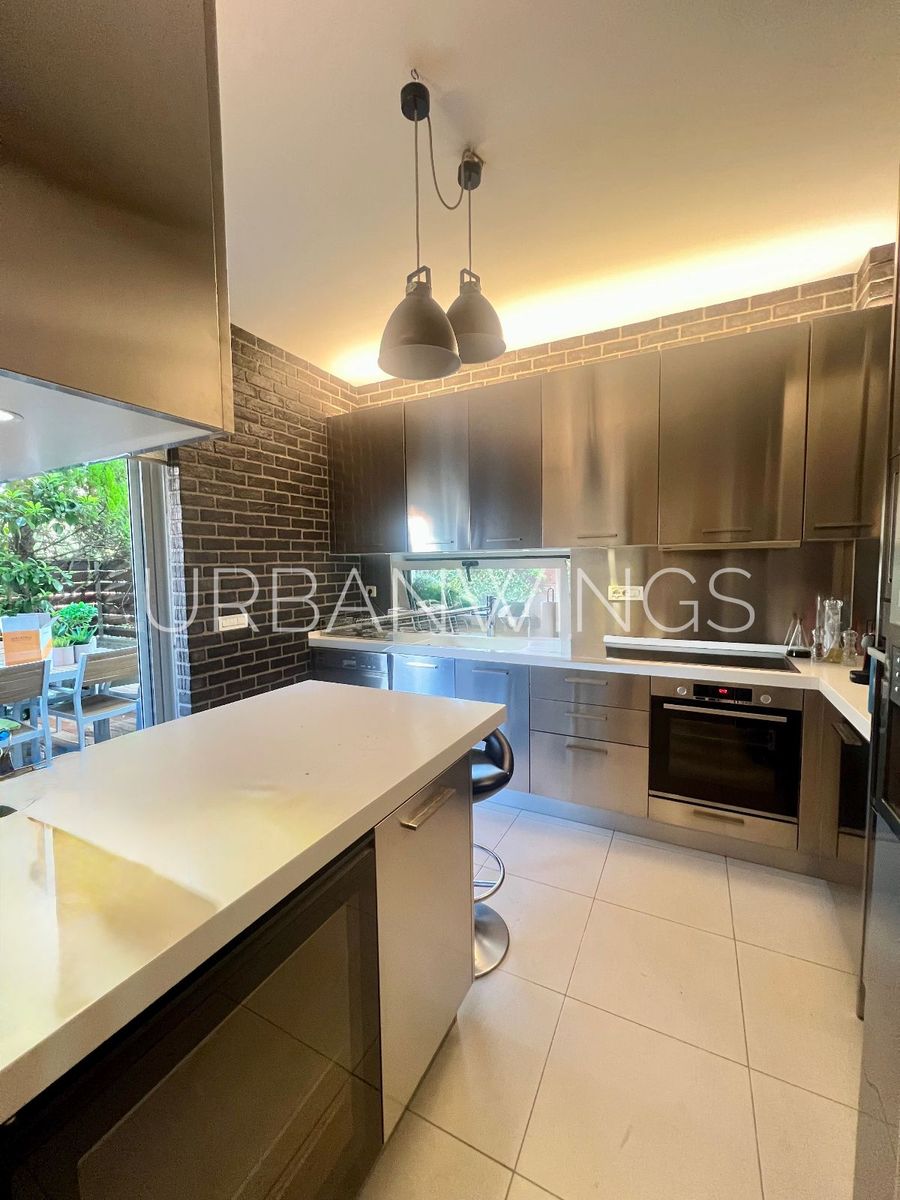 • Ισόγειο: Εντυπωσιακός χώρος υποδοχής, ευρύχωρο σαλόνι με μεγάλες τζαμαρίες που οδηγούν στον κήπο και την πισίνα, τραπεζαρία, ξεχωριστή κουζίνα με επιλεγμένα υλικά υψηλής αισθητικής και W.C. επισκεπτών.