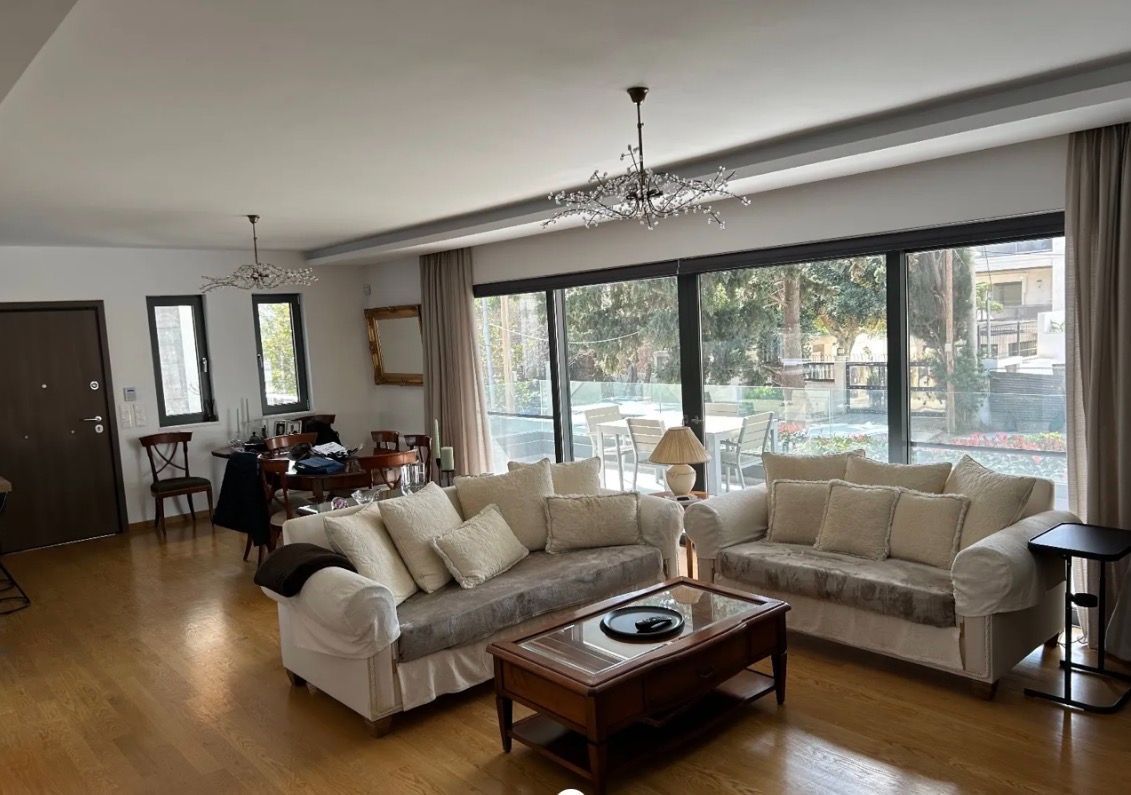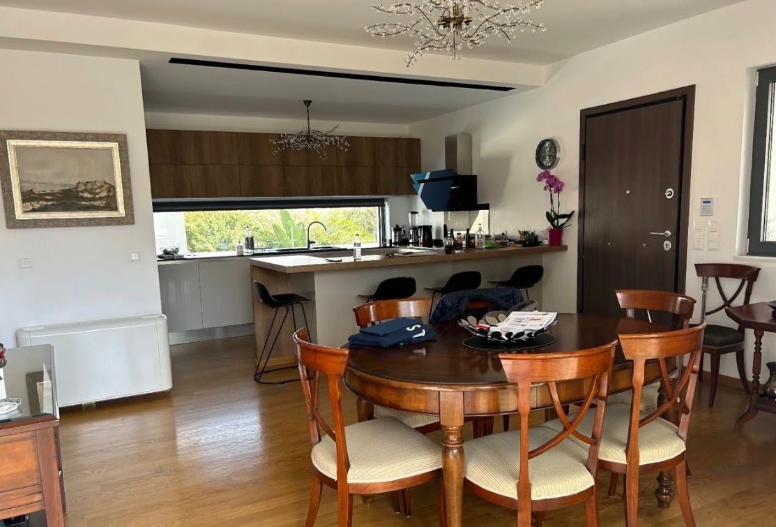 Αποτελείται από ευρύχωρο σαλόνι με τζάκι, χώρο τραπεζαρίας και μοντέρνα κουζίνα open plan με εντοιχισμένες επώνυμες ηλεκτρικές συσκευές.