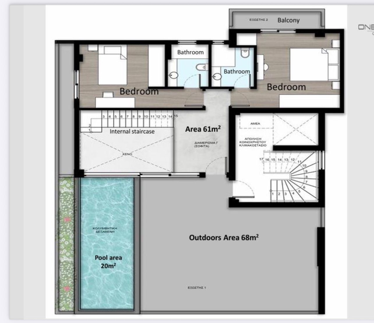 - Εμβαδόν μπαλκονιών: 50 τ.μ.