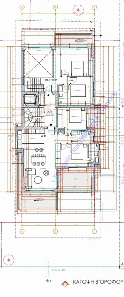 2ος όροφος 56 τ.μ., όπου βρίσκονται δύο υπνοδωμάτια και ένα μπάνιο, προσφέροντας άνεση και λειτουργικότητα για την οικογένεια.