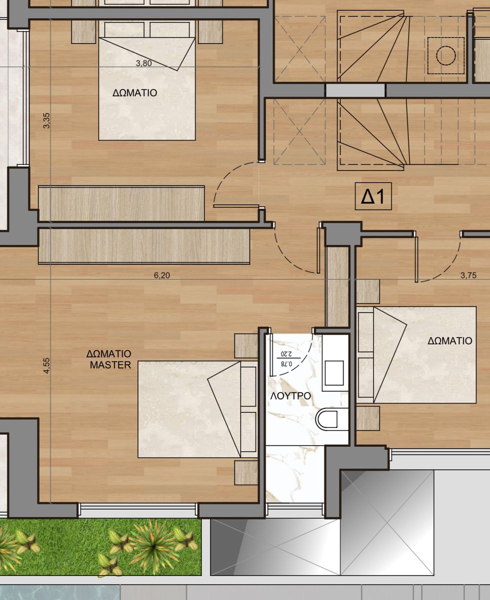 • 3 υπνοδωμάτια (1 master),