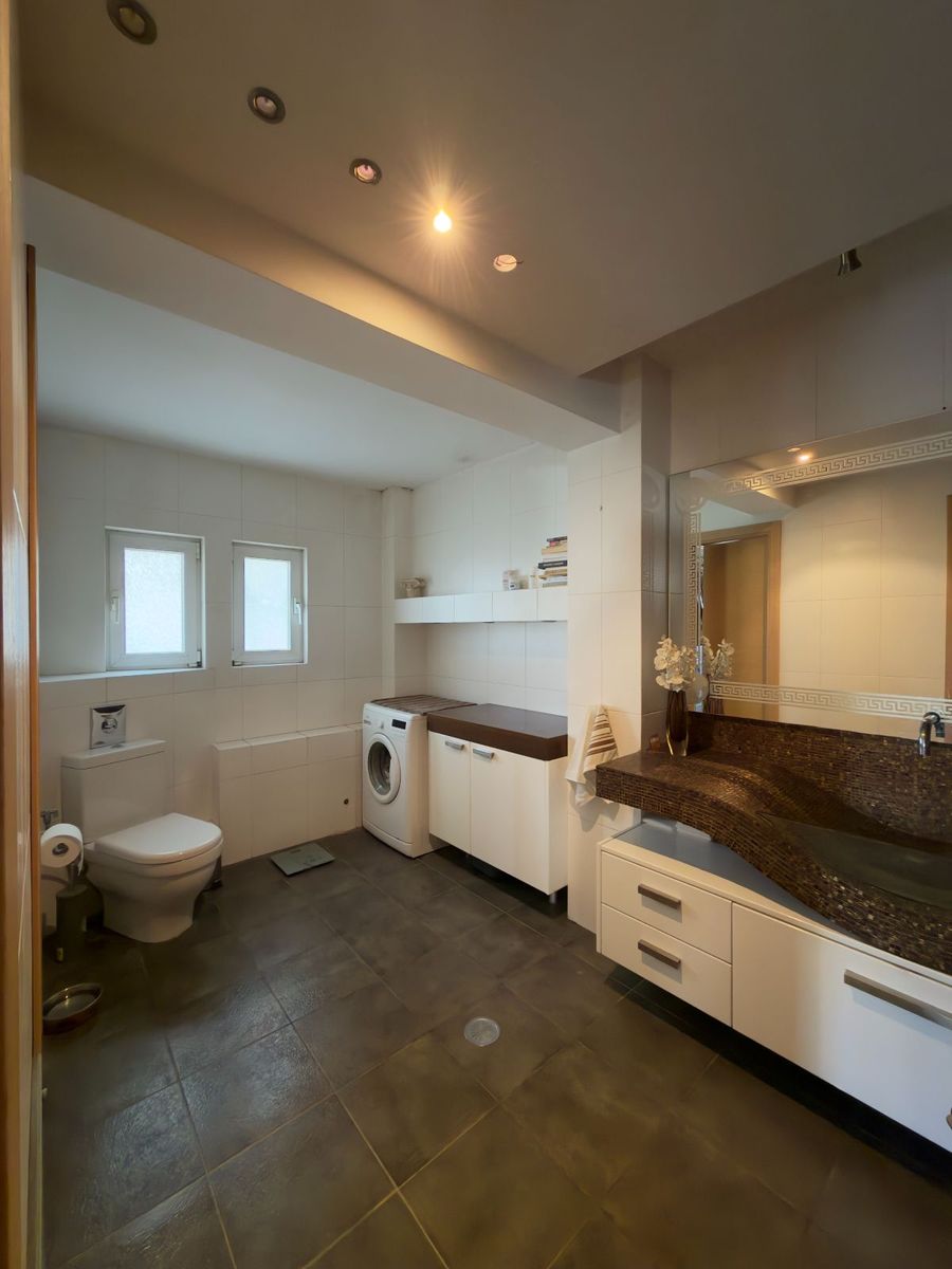 • 1ος όροφος (198 τ.μ.): ευρύχωρος χώρος υποδοχής με πρόσβαση σε μεγάλη βεράντα, μοντέρνα πλήρως εξοπλισμένη κουζίνα με καθημερινό καθιστικό, δύο υπνοδωμάτια (το ένα master με walk-in closet), μπάνιο και WC.