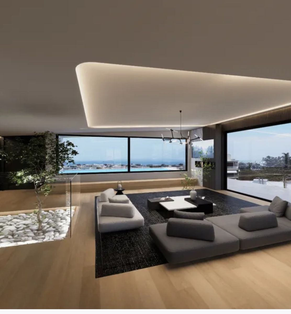 • Μεγάλο, φωτεινό καθιστικό με πανοραμική θέα