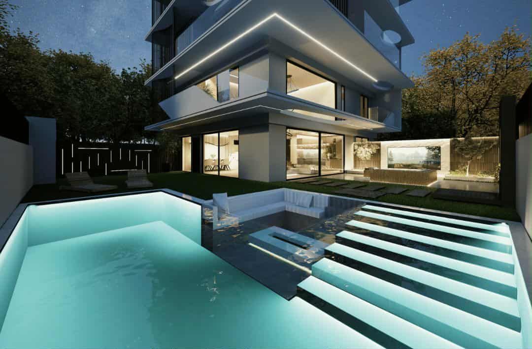 Σε ένα σύγχρονο, γωνιακό και υψηλής αισθητικής κτίριο, σε μία από τις πιο όμορφες και καταπράσινες περιοχές της Βούλας, διατίθεται πολυτελής μεζονέτα συνολικής επιφάνειας 147,13 τ.μ., με αποκλειστικό κήπο και ιδιωτική πισίνα.