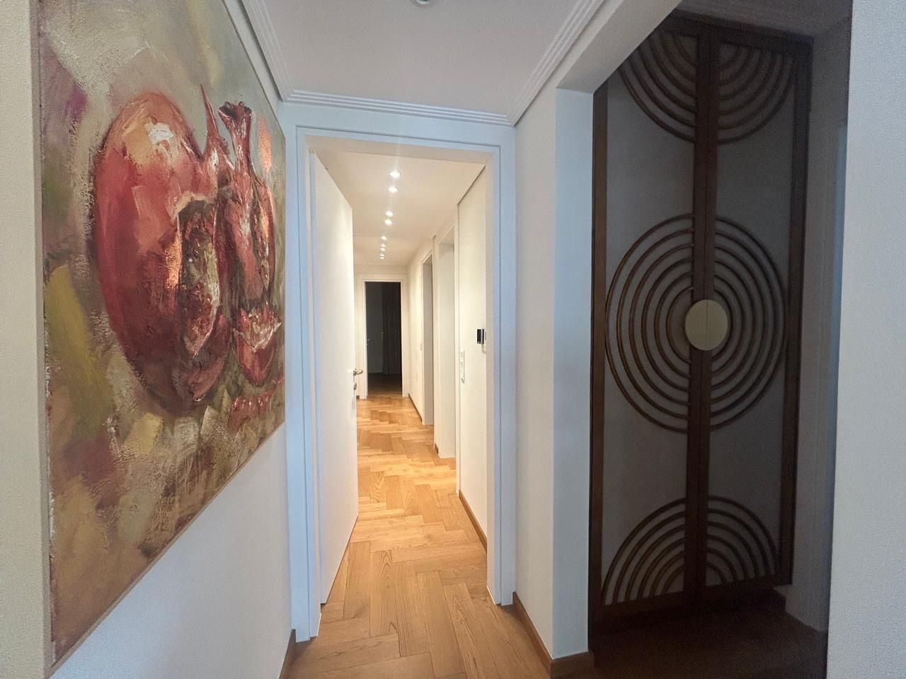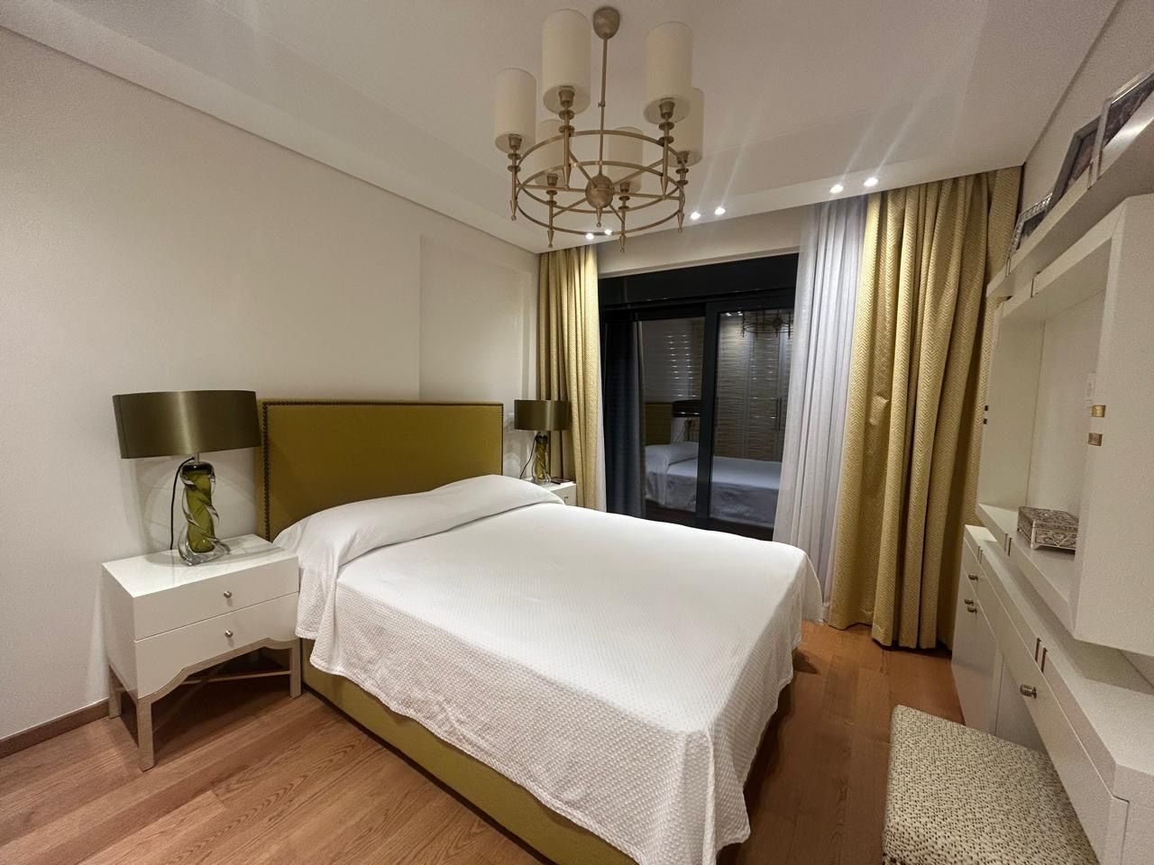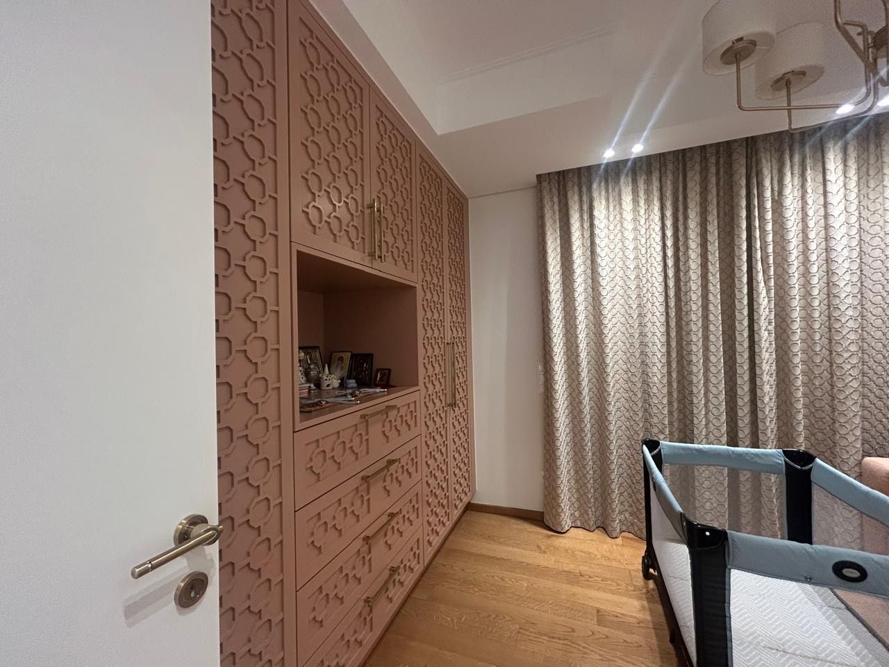 Το διαμέρισμα διαθέτει τρία υπνοδωμάτια, εκ των οποίων το ένα είναι master με δικό του μπάνιο, καθώς και ένα επιπλέον πλήρες μπάνιο και ξεχωριστό WC. Οι χώροι είναι φωτεινοί, καλομελετημένοι και διαμπερείς, ενώ το καθιστικό επικοινωνεί με μεγάλες γυάλινες επιφάνειες με την εξωτερική θέα, δημιουργώντας μια αίσθηση ενιαίου όγκου ανάμεσα σε εσωτερικό και εξωτερικό χώρο.