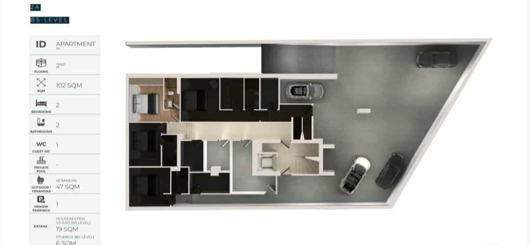Εξαιρετικό διαμέρισμα 2ου ορόφου, συνολικής επιφάνειας 84 τ.μ., με εντυπωσιακό μπαλκόνι 47 τ.μ., μόλις 350 μ. από τη θάλασσα. Αποτελείται από δύο ευρύχωρες master κρεβατοκάμαρες, ένα κομψό WC και ενιαίο, άρτια διαμορφωμένο χώρο καθιστικού–κουζίνας. Η αρχιτεκτονική του είναι σύγχρονη, με υψηλής ποιότητας υλικά και προσεγμένο σχεδιασμό που προσφέρει άνεση και πολυτέλεια.