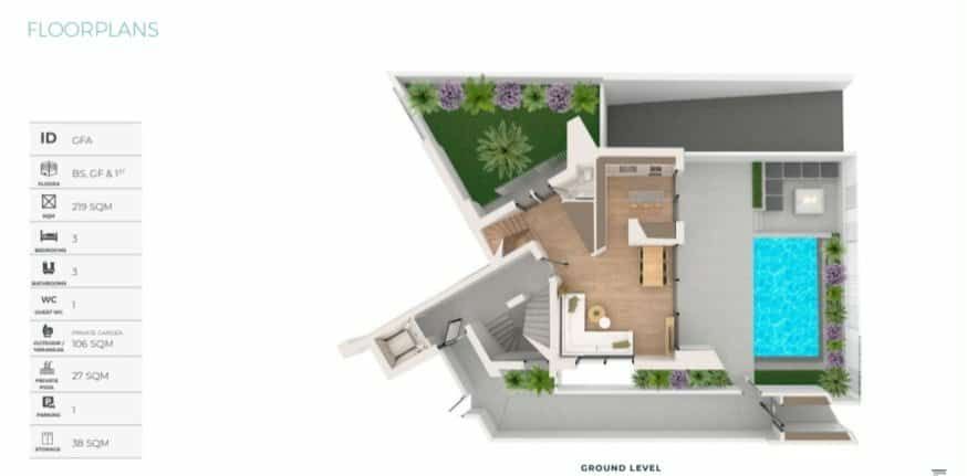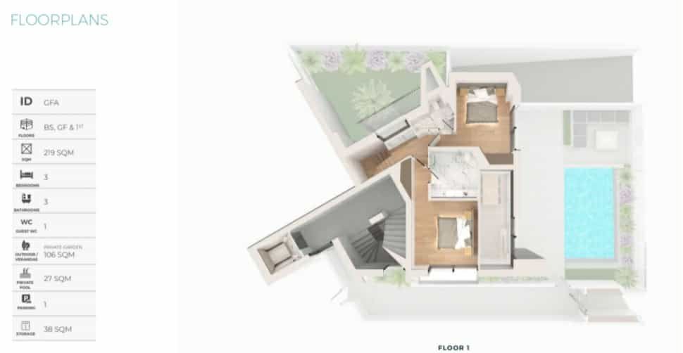 Με ιδιαίτερη προσοχή στη λεπτομέρεια, η κατοικία διαθέτει τρία πολυτελή master υπνοδωμάτια, το καθένα με το δικό του en-suite μπάνιο, καθώς και ένα επιπλέον WC για τους επισκέπτες. Οι ευρύχωροι χώροι διαβίωσης συνδέονται άψογα με τον ιδιωτικό κήπο, μια όμορφα διαμορφωμένη όαση 106 τ.μ., ιδανική για χαλάρωση και στιγμές στο ύπαιθρο. Στο επίκεντρο δεσπόζει μια κομψή πισίνα 27 τ.μ., που ενισχύει τη γαλήνια ατμόσφαιρα του σπιτιού.