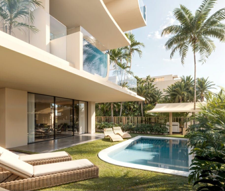 Ο αρχιτεκτονικός σχεδιασμός ξεχωρίζει για τον μοναδικό συνδυασμό οργανικών καμπύλων και καθαρών γραμμών, δημιουργώντας ένα εντυπωσιακό και κομψό αισθητικό αποτέλεσμα. Η πλούσια φύτευση και οι ιδιωτικοί χώροι νερού ενισχύουν την αίσθηση πολυτέλειας.