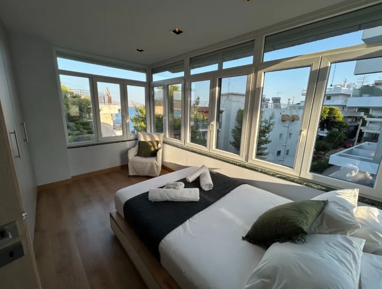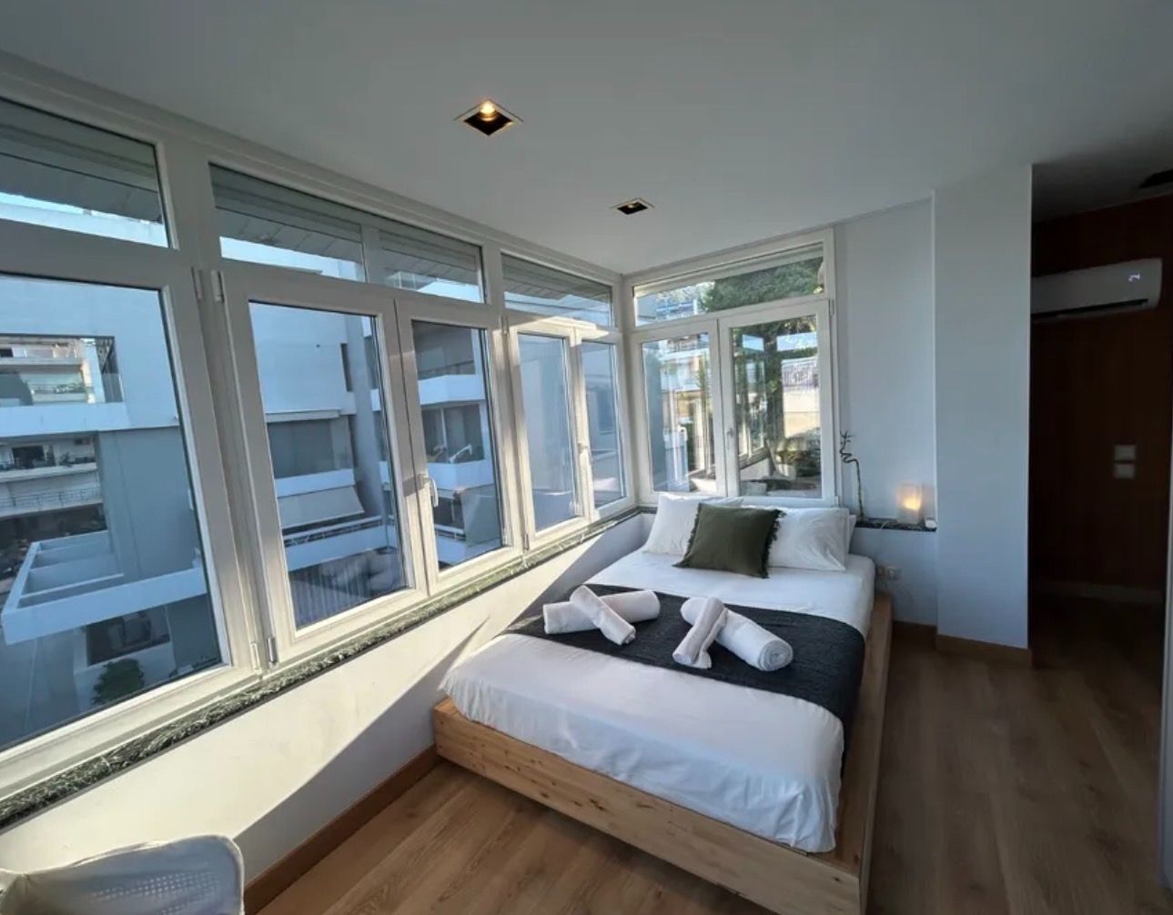 Το διαμέρισμα διαθέτει 4 ευρύχωρα, φωτεινά και άνετα δωμάτια, όλα εξοπλισμένα με σύγχρονα κλιματιστικά για απόλυτη άνεση όλο τον χρόνο. Είναι διαθέσιμο πλήρως εξοπλισμένο ή χωρίς έπιπλα, προσφέροντας απόλυτη ευελιξία ανάλογα με τις ανάγκες σας.