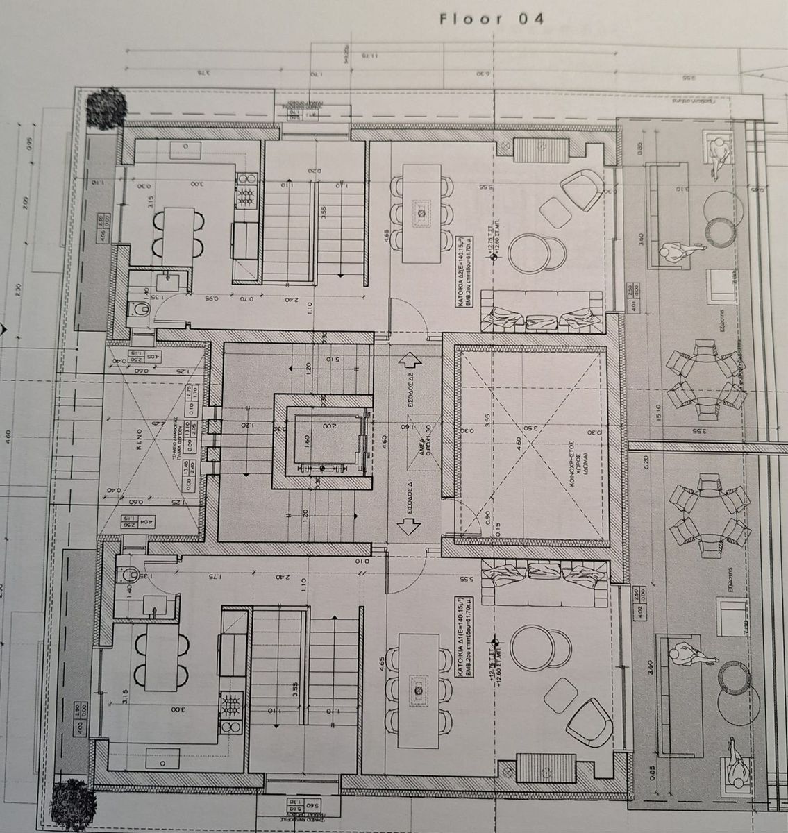 Ο 4ος όροφος φιλοξενεί έναν φωτεινό χώρο καθιστικού και τραπεζαρίας, ξεχωριστή κουζίνα και WC επισκεπτών. Τα μεγάλα ανοίγματα προσφέρουν άπλετο φυσικό φως, ενισχύοντας την αίσθηση άνεσης και ευρυχωρίας.