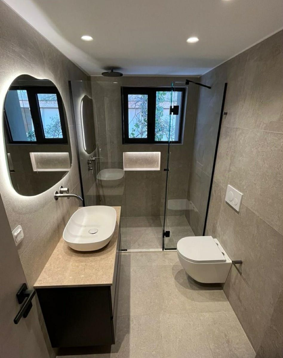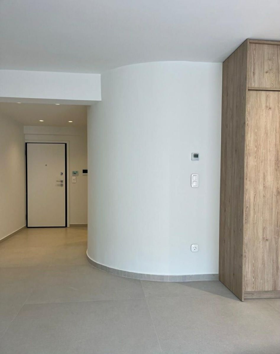Το εσωτερικό έχει υποστεί ολική, ποιοτική ανακαίνιση, με κομψούς ουδέτερους τόνους και προσεγμένα τελειώματα. Η διαρρύθμιση περιλαμβάνει 2 υπνοδωμάτια, 1 σύγχρονο μπάνιο, καθώς και φωτεινό καθιστικό με ανοιχτή κουζίνα, με άπλετο φυσικό φως.