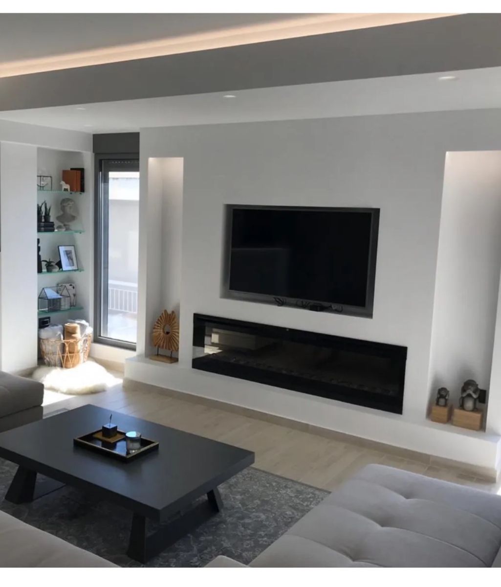 • Ευρύχωρο, ενιαίο καθιστικό με τζάκι και μεγάλες μπαλκονόπορτες