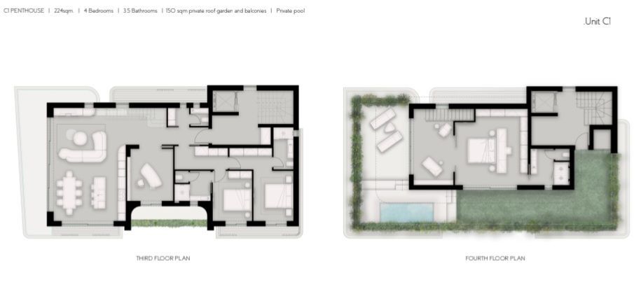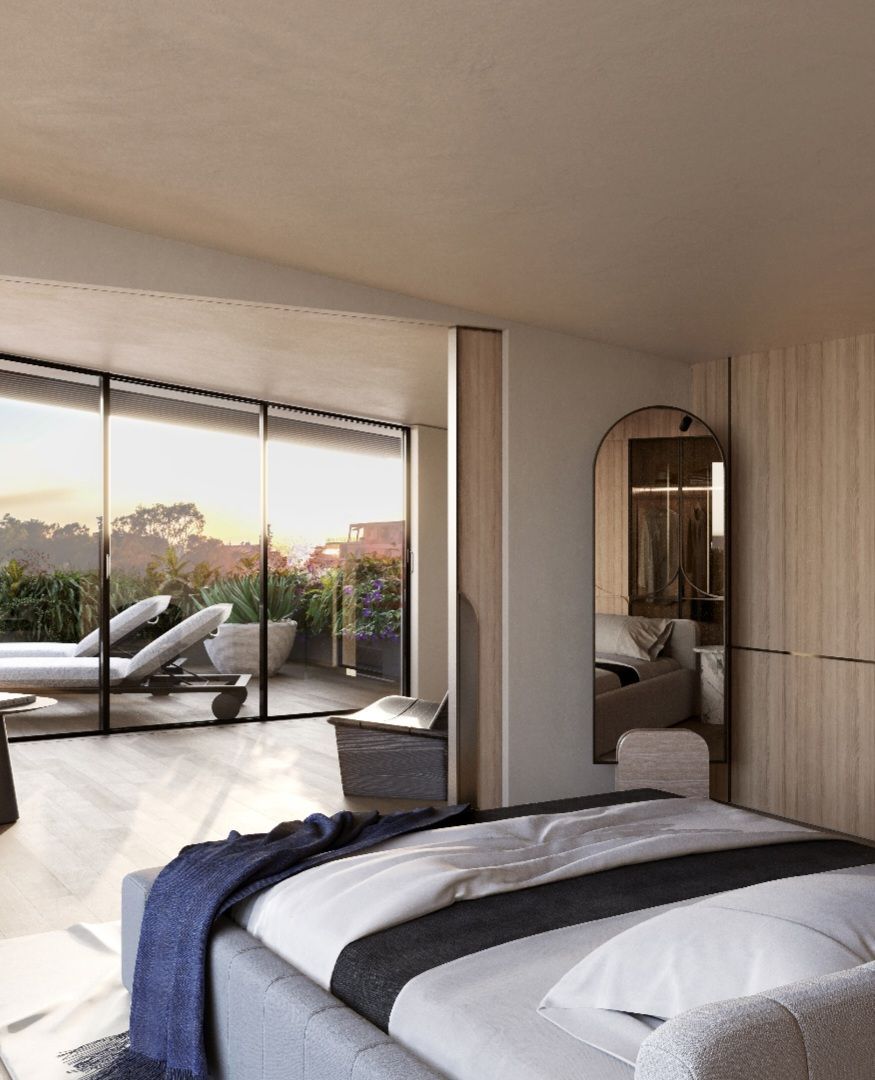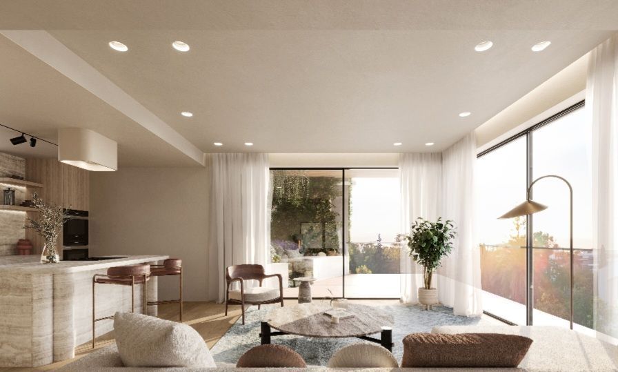 Το ρετιρέ 224 τ.μ., το οποίο εκτείνεται στον 3ο και 4ο όροφο, απολαμβάνει μερική θέα στη θάλασσα και εξαιρετικό φυσικό φως χάρη στα μεγάλα ανοίγματα και την ανοιχτή διαρρύθμιση.