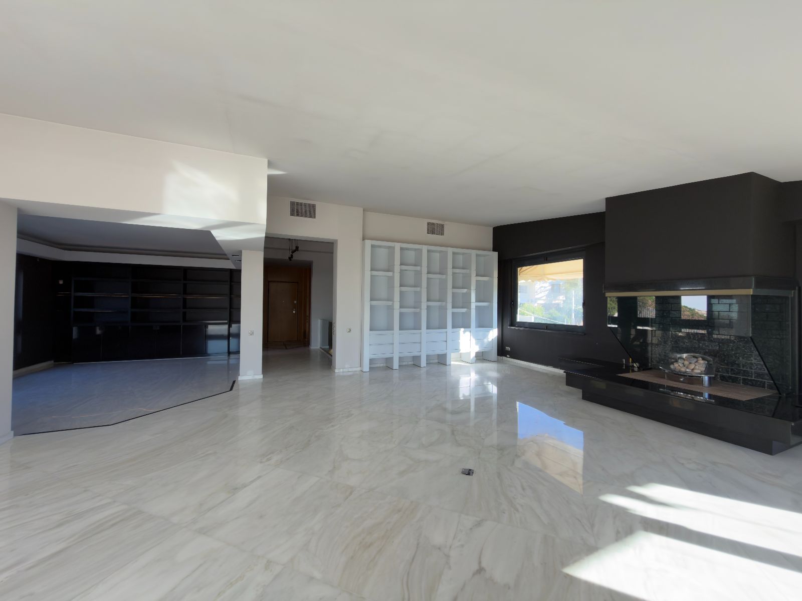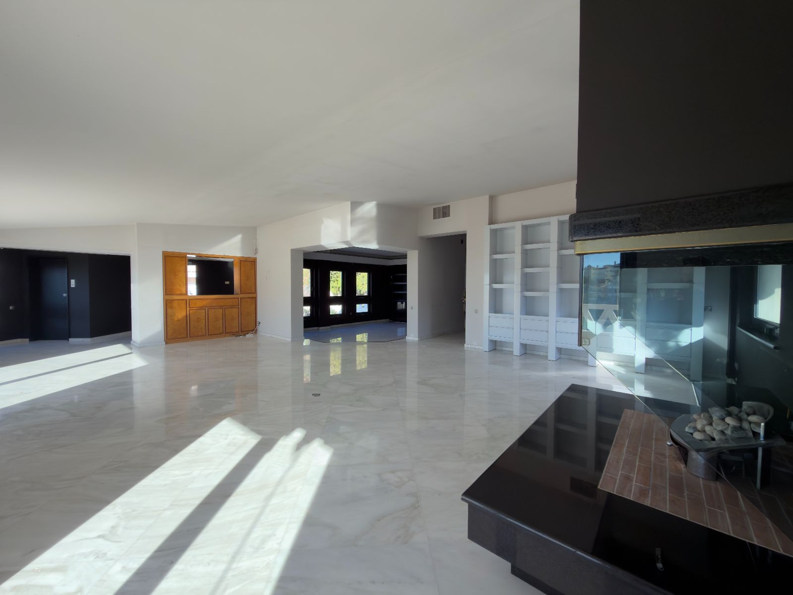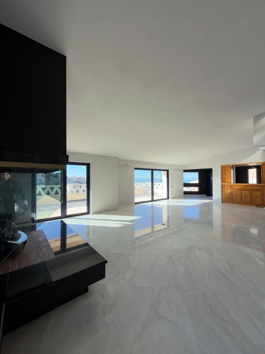 Στον 5ο όροφο συναντάμε τον κύριο χώρο της κατοικίας: ένα τεράστιο, πάρα πολύ φωτεινό και διαμπερές σαλόνι με επιβλητικό τζάκι, μεγάλες βεράντες με απεριόριστη θέα στη θάλασσα, μια ευρύχωρη και λειτουργική κουζίνα, καθώς και έναν ξεχωριστό, μεγάλο χώρο για τραπεζαρία — ιδανικό περιβάλλον για άνετη καθημερινότητα και φιλοξενία.