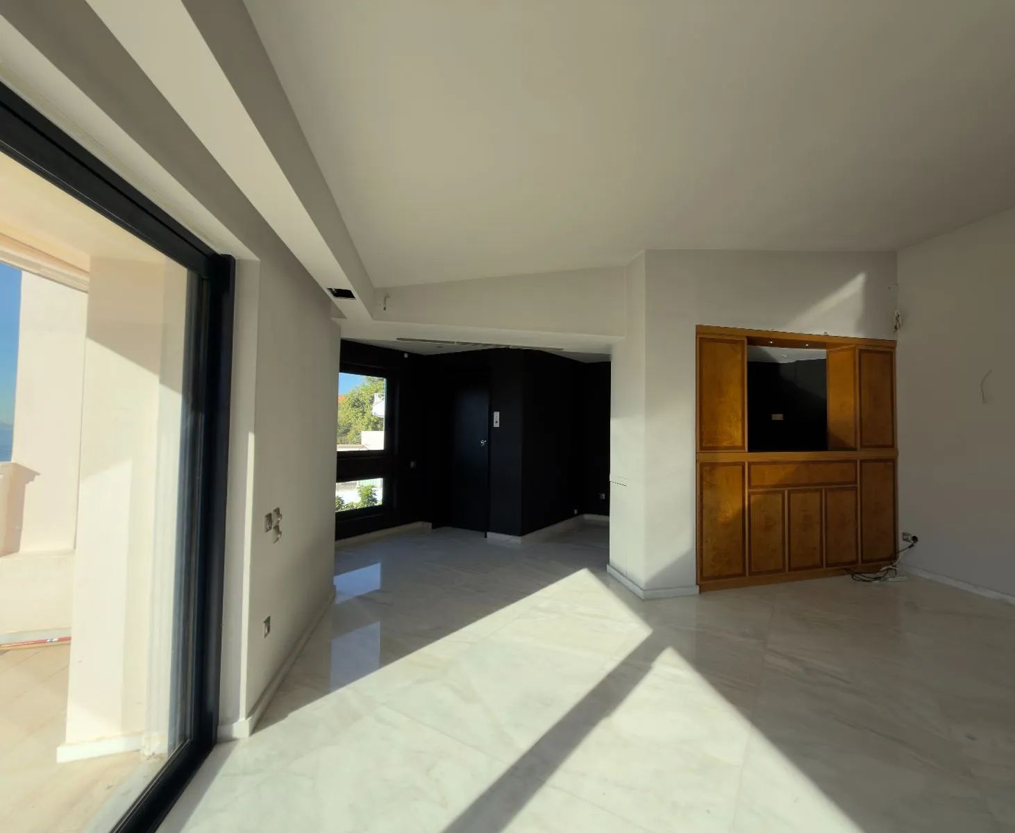 Στο πολυτελές και πράσινο Πανόραμα Βούλας διατίθεται μια εντυπωσιακή και εξαιρετικά φωτεινή, διαμπερής μεζονέτα 333 τ.μ., κατασκευής 2000, η οποία ξεχωρίζει για την υψηλή ποιότητα των υλικών της, το άπλετο φυσικό φως και τις πανοραμικές θαλασσινές εικόνες. Αποτελείται από δύο επίπεδα, στον 4ο και 5ο όροφο (160 τ.μ. και 169 τ.μ. αντίστοιχα), με μάρμαρα Διονύσου και ξύλινα δάπεδα σε όλους τους χώρους.