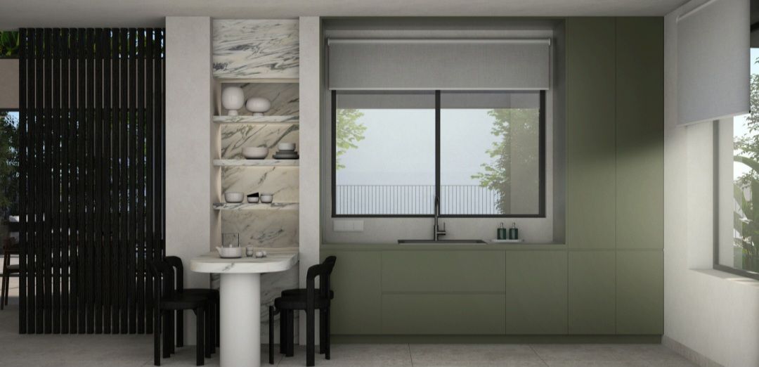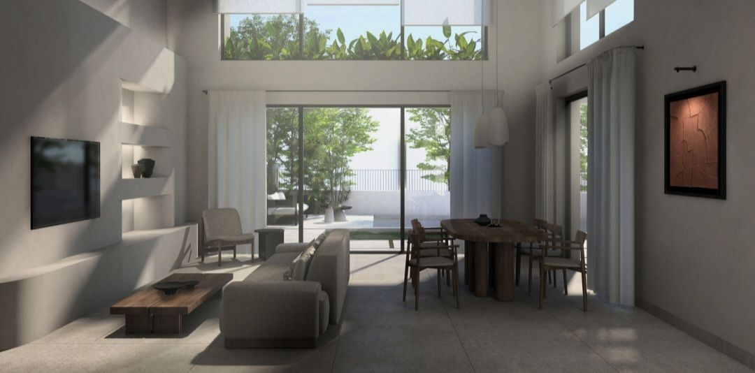 Το ακίνητο διαθέτει ευρύχωρο ενιαίο χώρο κουζίνας και καθιστικού, σχεδιασμένο ώστε να δημιουργεί ένα φωτεινό και φιλόξενο περιβάλλον, ιδανικό τόσο για καθημερινή διαβίωση όσο και για φιλοξενία. Μεγάλες ανοιγόμενες επιφάνειες εξασφαλίζουν άμεση πρόσβαση στον ιδιωτικό κήπο 121 τ.μ., όπου η πισίνα 21 τ.μ. προσφέρει τον ιδανικό χώρο για χαλάρωση, καλοκαιρινές συγκεντρώσεις και απόλαυση του εξωτερικού χώρου με απόλυτη ιδιωτικότητα.