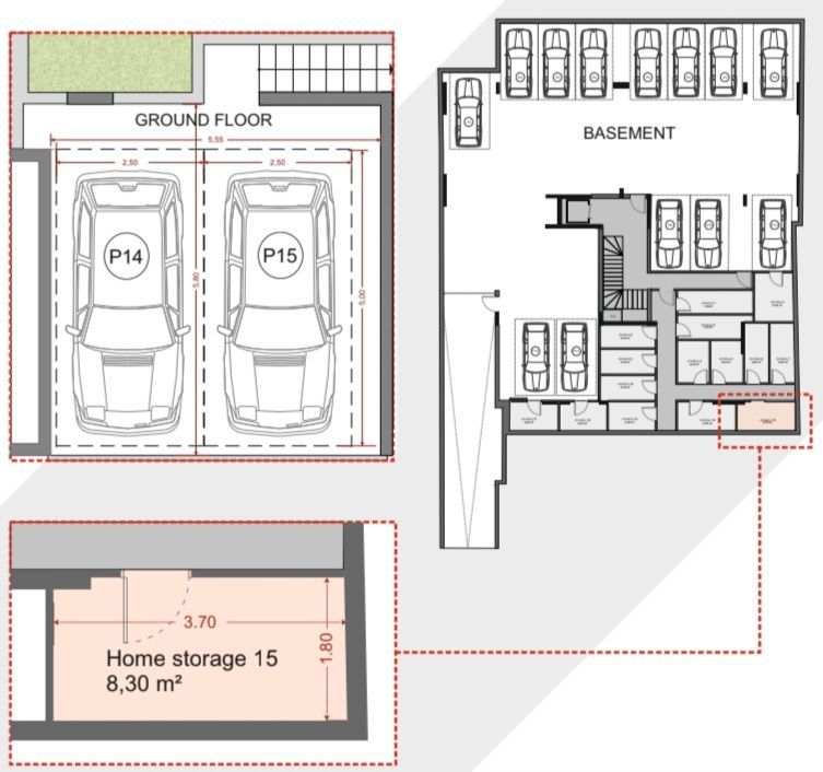 2 θέσεις στάθμευσης στο ισόγειο