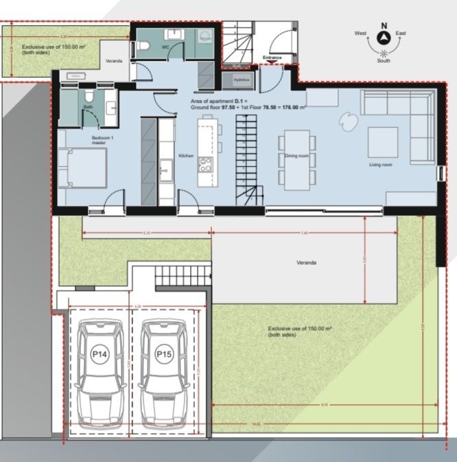 Άμεση πρόσβαση σε ιδιωτικό κήπο αποκλειστικής χρήσης 150 τ.μ.