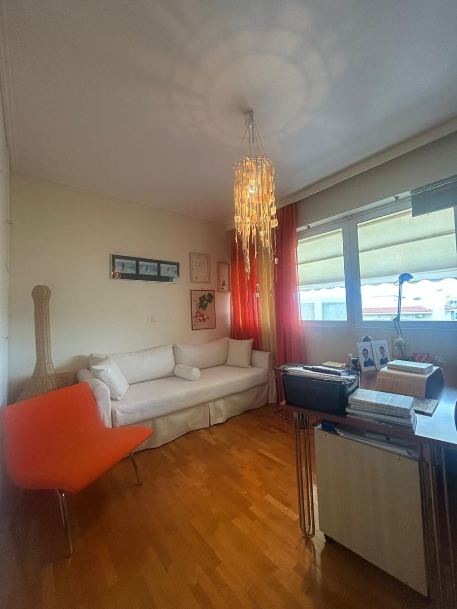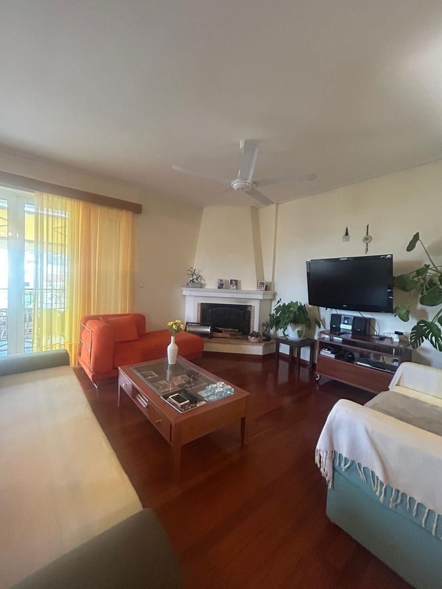 Αναπτύσσεται σε λειτουργική κάτοψη και διαθέτει τρία ευρύχωρα υπνοδωμάτια, κουζίνα, δύο μπάνια, καθώς και μεγάλη βεράντα που προσφέρει άνεση και ποιότητα ζωής. Το διαμέρισμα είναι διαμπερές, με άριστο φυσικό φωτισμό και αερισμό, ενώ το τζάκι και τα ξύλινα πατώματα προσθέτουν ζεστασιά και διαχρονική αισθητική.