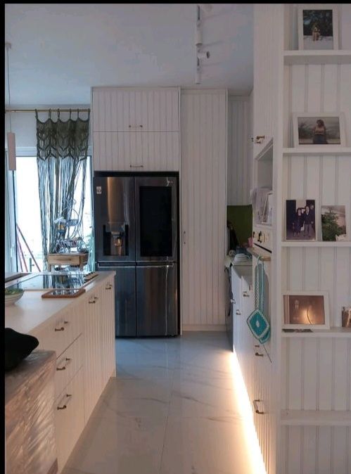 * Δάπεδα σαλονιού & κουζίνας με πλακάκια υψηλής ποιότητας τύπου μαρμάρου
