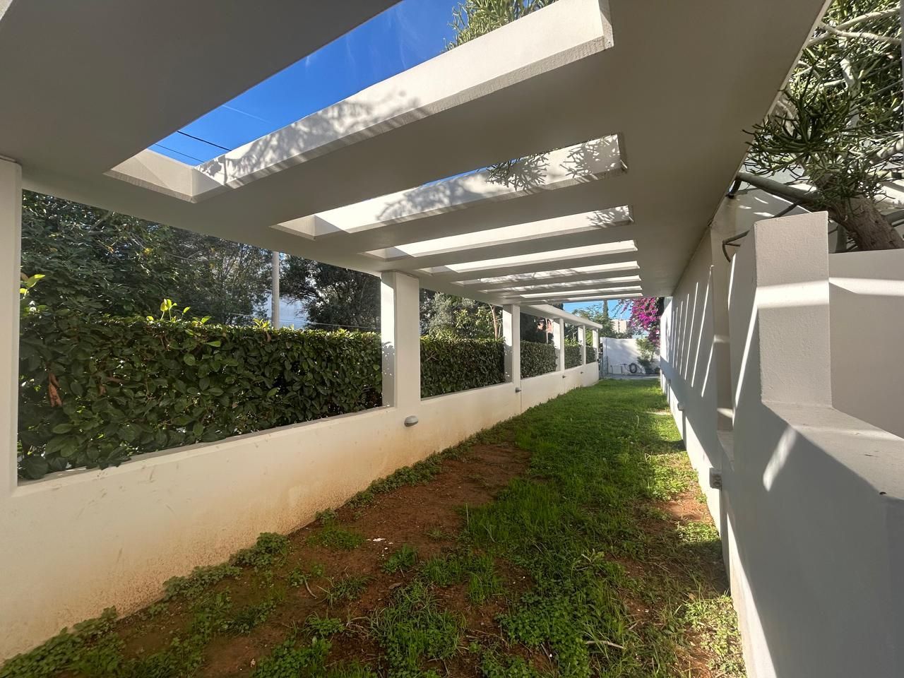 Από το σαλόνι υπάρχει άμεση έξοδος σε έναν ιδιωτικό, όμορφα διαμορφωμένο κήπο, όπου βρίσκονται: