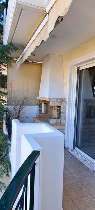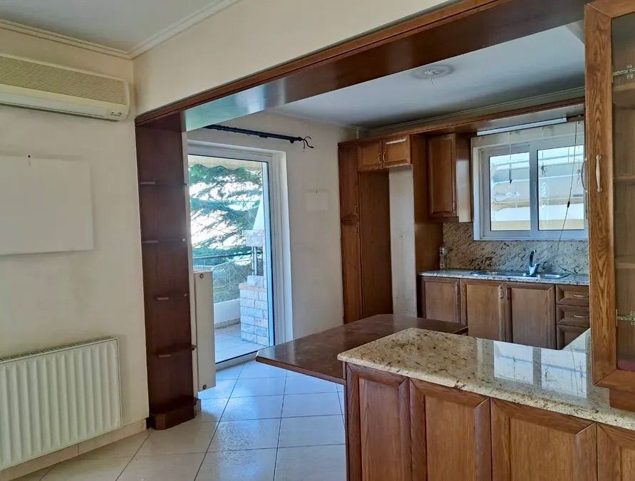 Οροφοδιαμέρισμα φωτεινό, με εξαιρετική διαρρύθμιση. Διαθέτει μεγάλο σαλόνι με τζάκι και σαλονοκουζίνα, καθώς και πολύ όμορφη βεράντα με πράσινο και barbecue. Περιλαμβάνει τρία ευρύχωρα υπνοδωμάτια, εκ των οποίων το ένα είναι master, ενώ όλα τα δωμάτια έχουν πρόσβαση σε δικό τους μπαλκόνι. Υπάρχουν πολλές εντοιχισμένες ντουλάπες και άνετοι αποθηκευτικοί χώροι.