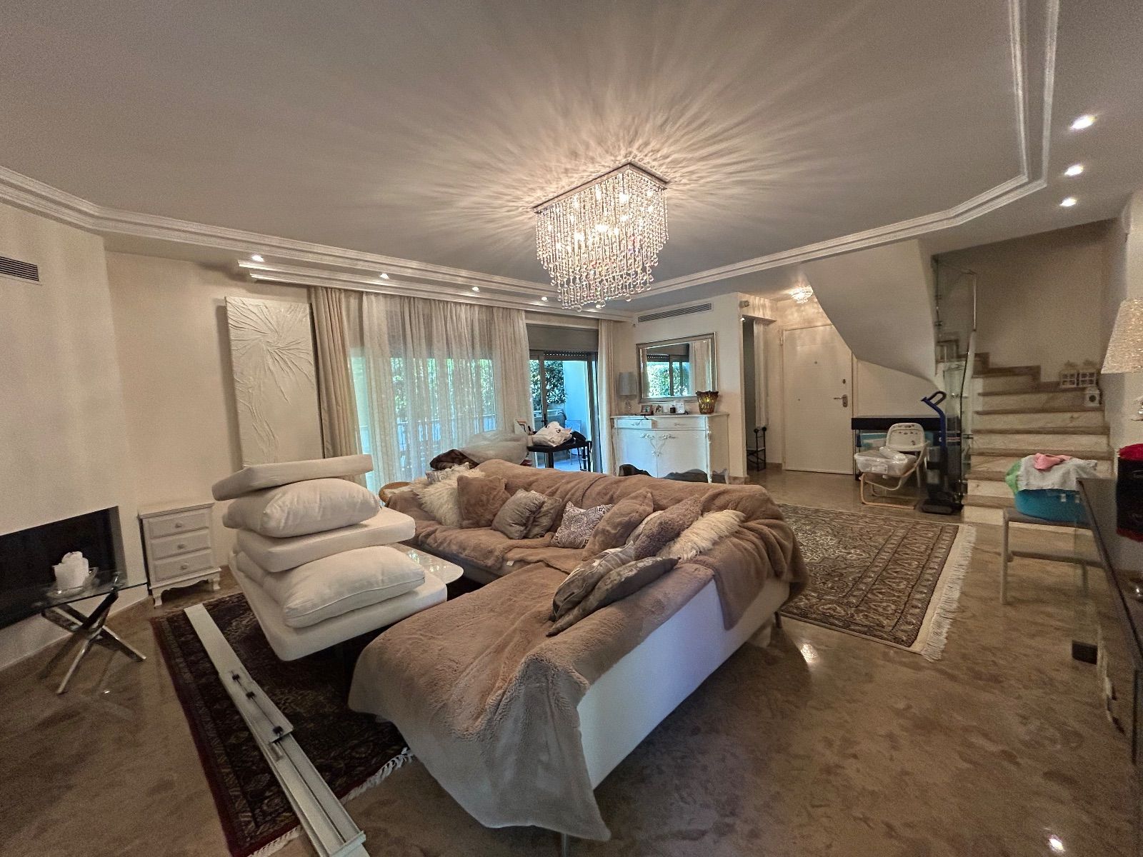 Εντυπωσιακό, ευρύχωρο σαλόνι με ενεργειακό τζάκι