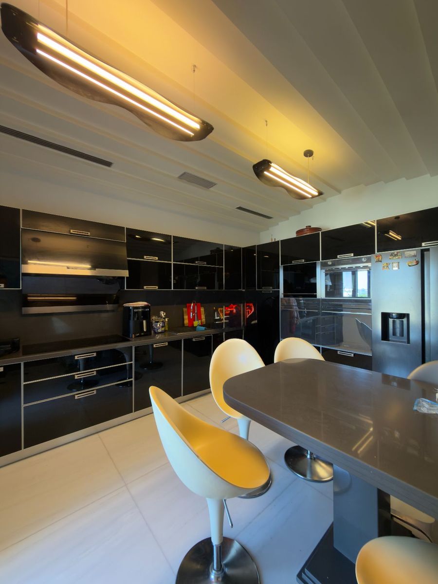 Στο κάτω επίπεδο βρίσκονται τρία master υπνοδωμάτια, το καθένα με το δικό του en-suite μπάνιο, εξασφαλίζοντας πλήρη ιδιωτικότητα και ανεξαρτησία. Επιπλέον, υπάρχει ξεχωριστό δωμάτιο υπηρεσίας.