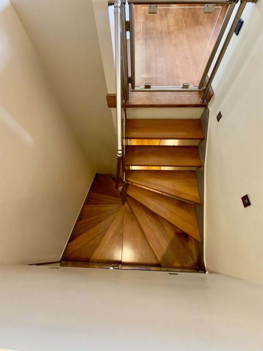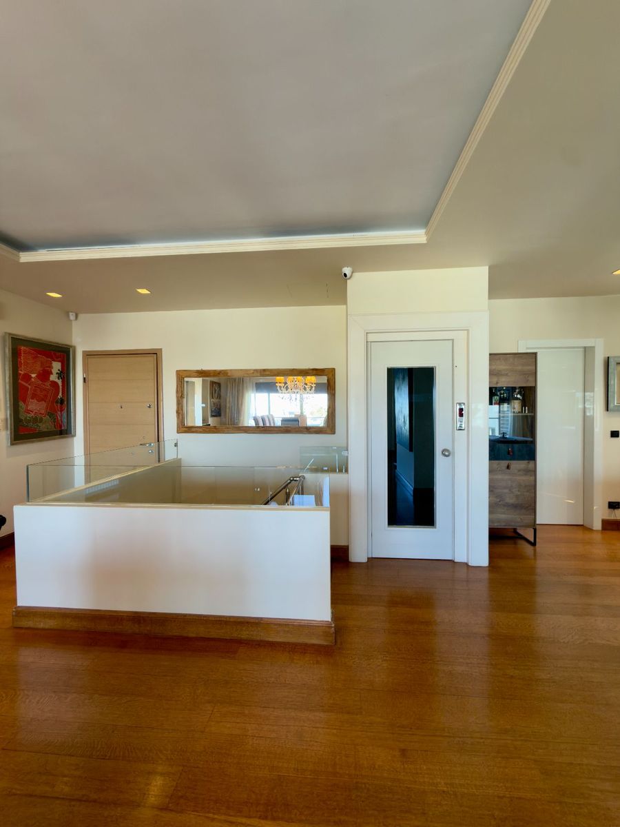 Η κατοικία αναπτύσσεται σε δύο κύρια επίπεδα και συνδέεται εσωτερικά, ενώ διαθέτει και ανελκυστήρα.