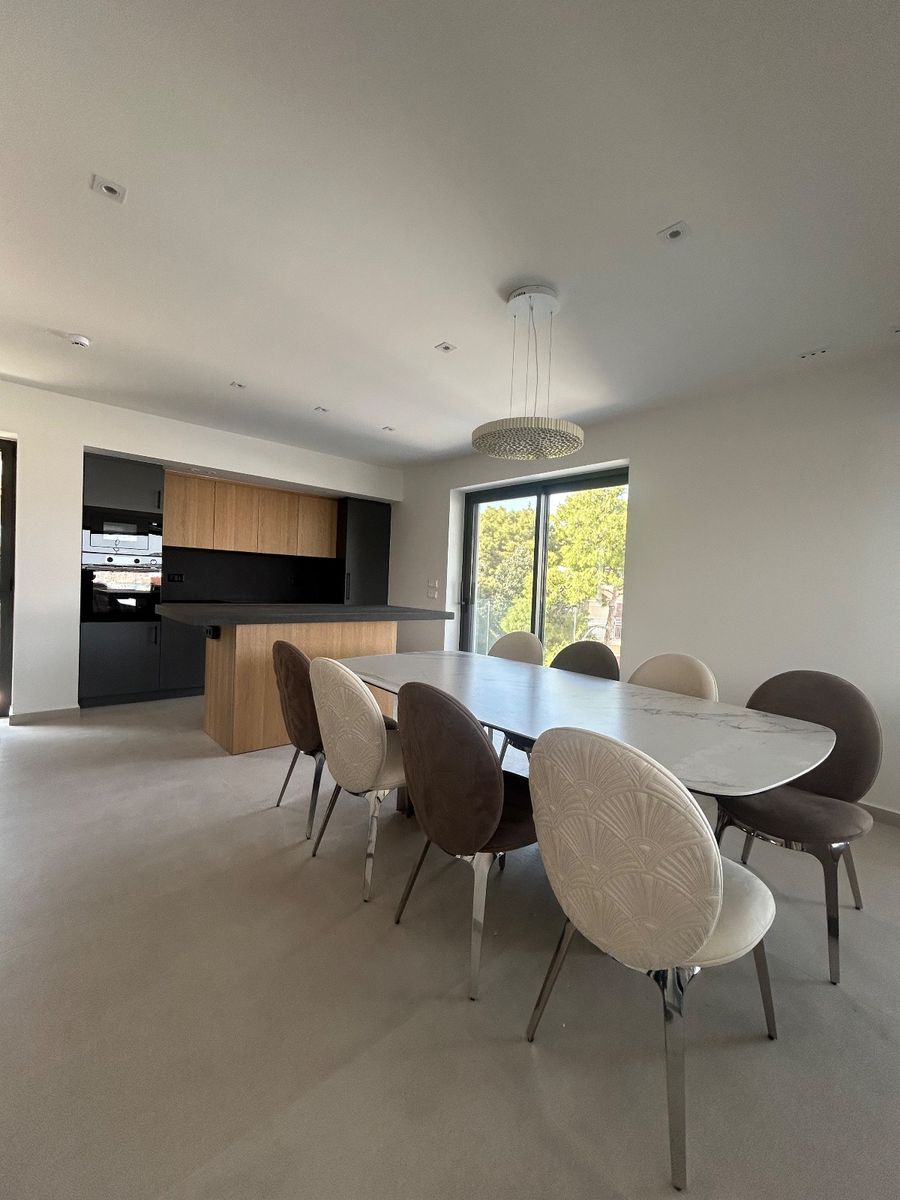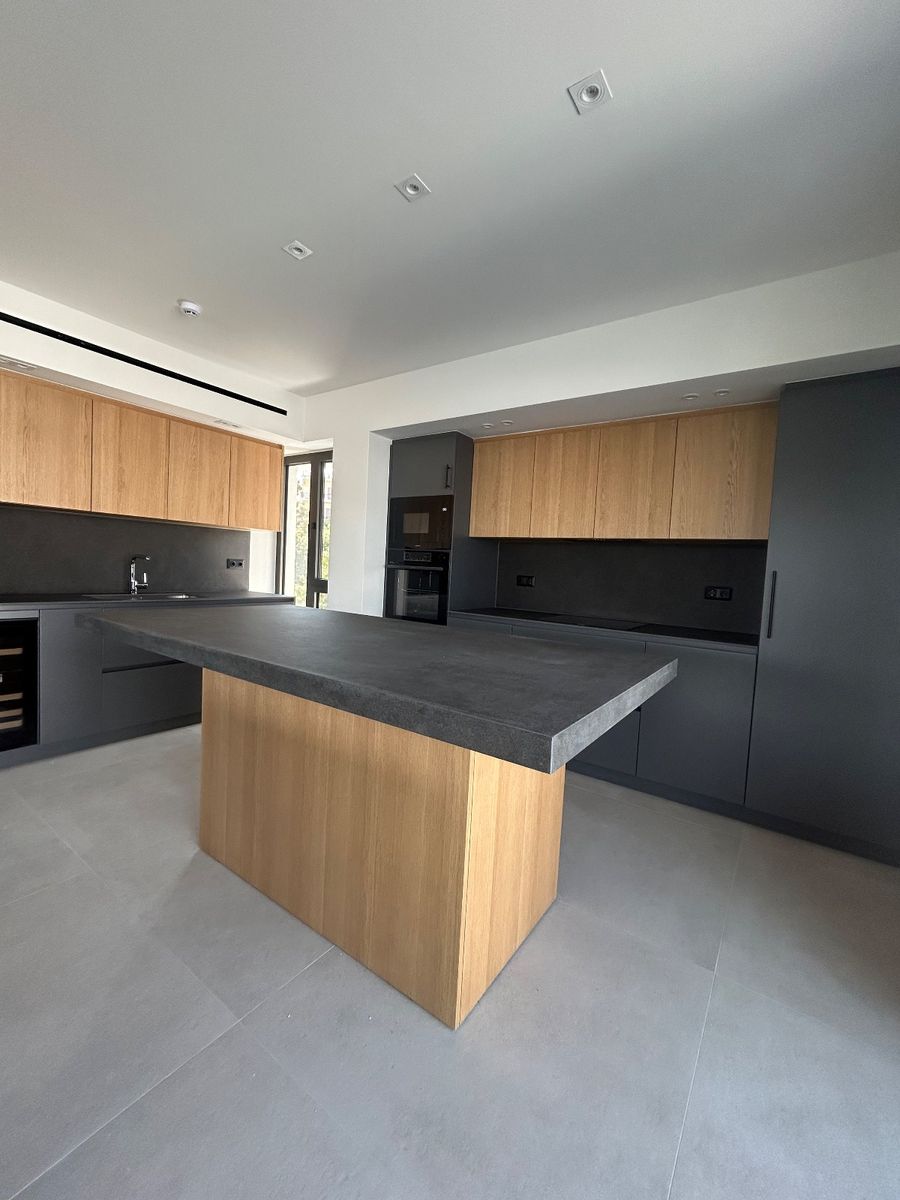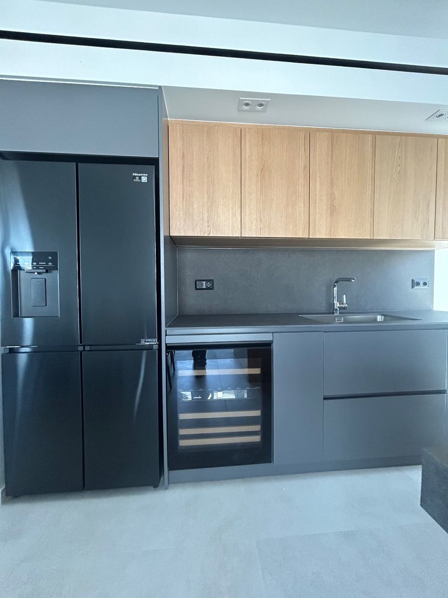 Η open plan κουζίνα είναι πλήρως εξοπλισμένη με σύγχρονες ηλεκτρικές συσκευές και ενσωματώνεται αρμονικά στον χώρο.