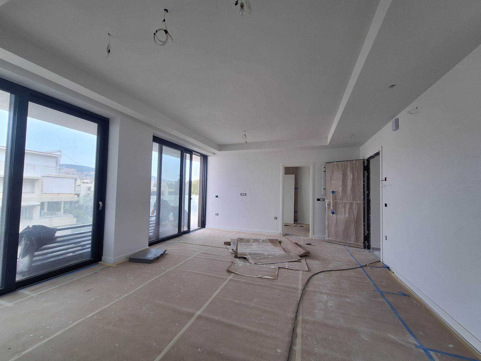 Η κατοικία διαθέτει ευρύχωρο σαλόνι–τραπεζαρία, ανεξάρτητη μοντέρνα κουζίνα και 2 master υπνοδωμάτια. Τα μεγάλα ανοίγματα εξασφαλίζουν άπλετο φυσικό φως σε όλους τους χώρους.