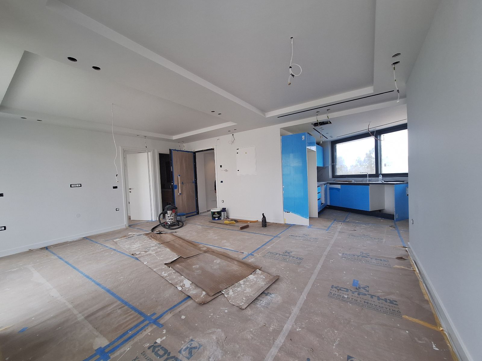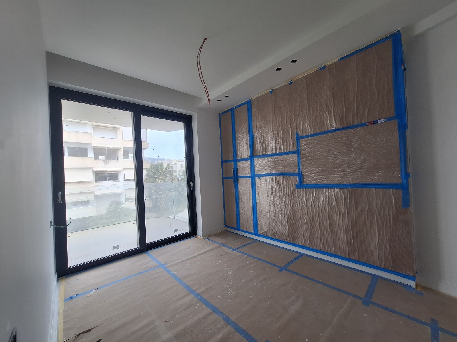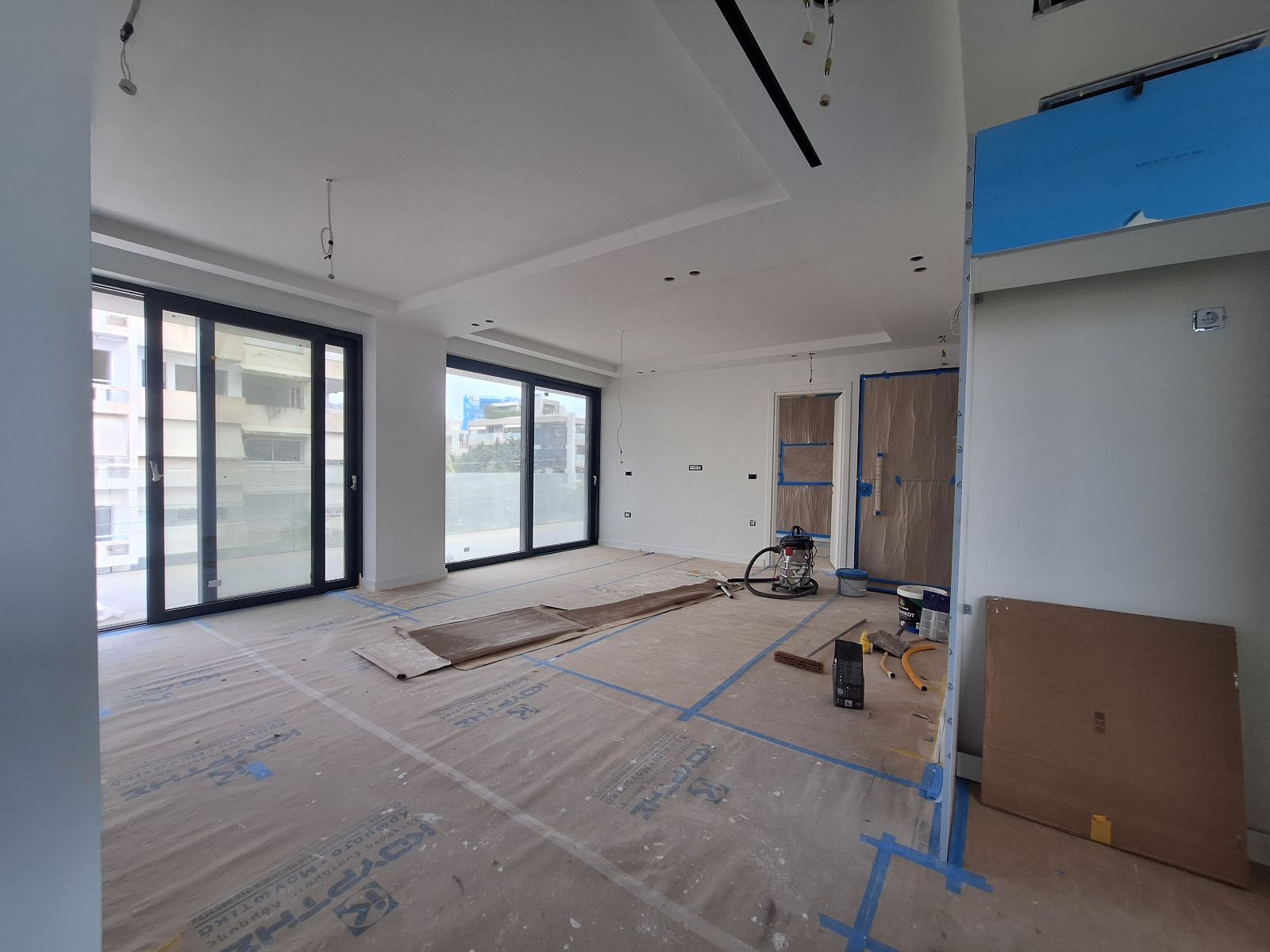 Το ακίνητο διαθέτει ευρύχωρο σαλόνι–τραπεζαρία με ενιαία μοντέρνα κουζίνα, 2 υπνοδωμάτια (εκ των οποίων 1 master) και 2 μπάνια. Τα μεγάλα ανοίγματα εξασφαλίζουν άπλετο φυσικό φως σε όλους τους χώρους.