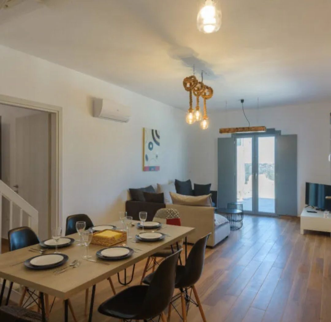 Η κατοικία αναπτύσσεται σε δύο επίπεδα και προσφέρει άνεση και λειτουργικότητα. Στο ισόγειο βρίσκεται ευρύχωρος χώρος υποδοχής, πλήρως εξοπλισμένη κουζίνα και ένα master υπνοδωμάτιο. Στο ανώτερο επίπεδο φιλοξενούνται δύο επιπλέον υπνοδωμάτια, το καθένα με το δικό του μπάνιο.