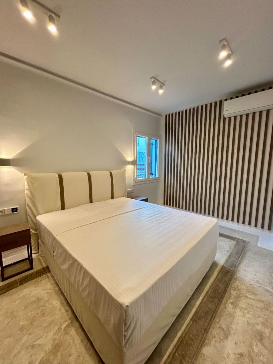 Η κατοικία περιλαμβάνει έξι ευρύχωρα υπνοδωμάτια και πέντε κομψά μπάνια, σχεδιασμένα με έμφαση στην άνεση, τη λειτουργικότητα και την εκλεπτυσμένη πολυτέλεια. Ένα από τα υπνοδωμάτια διαθέτει ιδιωτικό μπαλκόνι με πανοραμική θέα στη θάλασσα, ιδανικό για να απολαμβάνει κανείς τις μοναδικές ανατολές και δύσεις της Μυκόνου.
