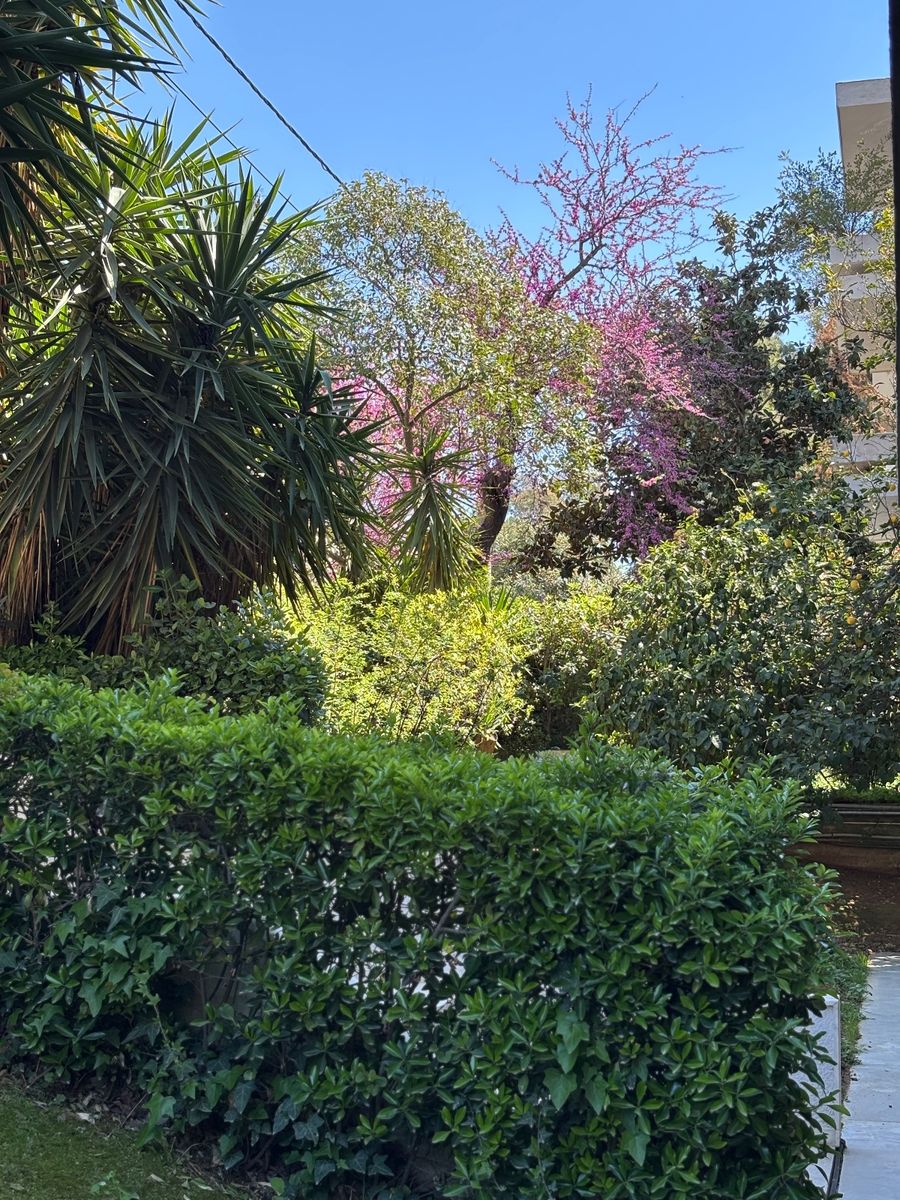 Βλέπει και βγαίνει σε καταπράσινο κήπο.